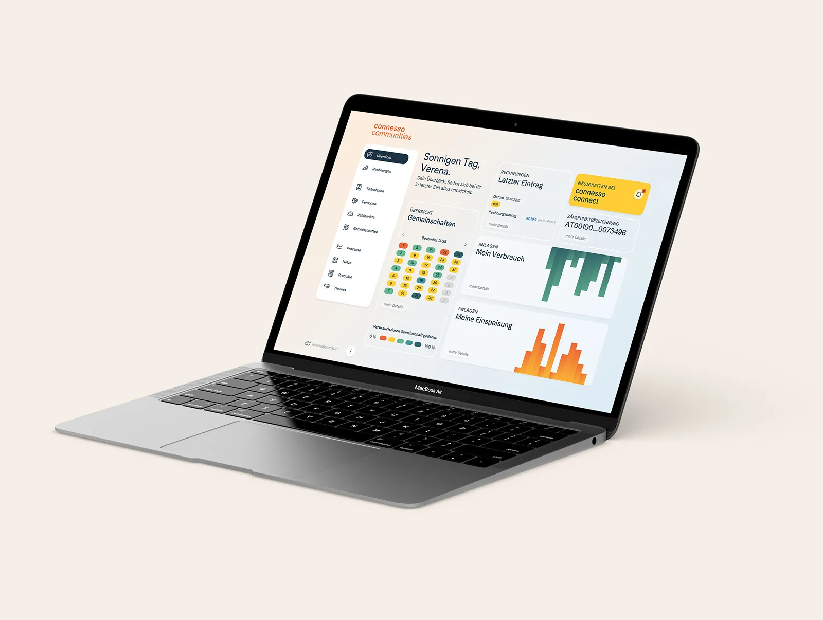 Wir unterstützen bei Förderabwicklung, Genehmigungen, Netzanschluss und der Vermarktung von Ökostromanlagen. Unsere Plattform connesso communities bietet Lösungen für Energiegemeinschaften – von Gründung bis Abrechnung.